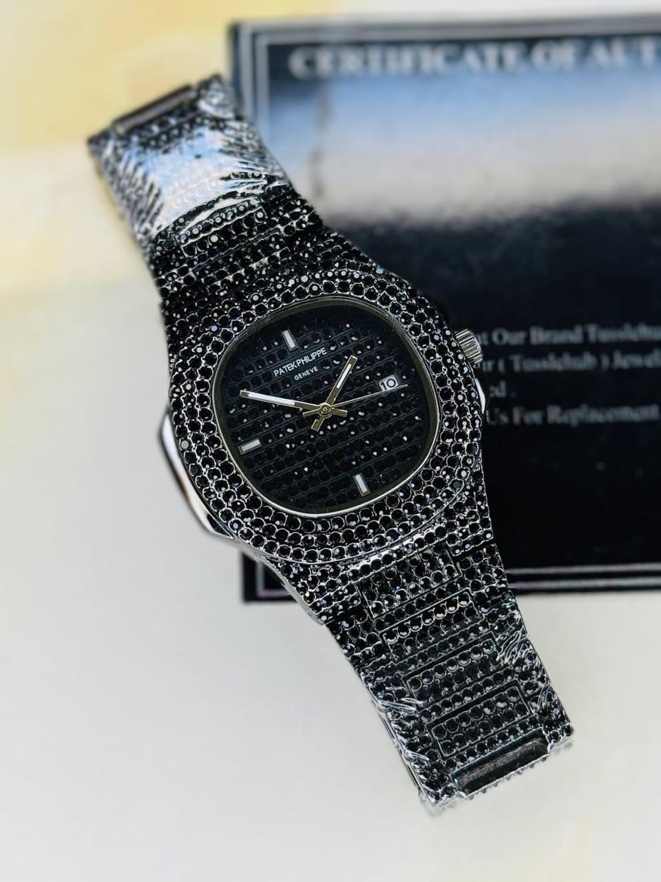 🖤 Bold in Black, Built to Impress A striking black dial surrounded by glistening stones—pure elegance in every detail. 💎 Iced Sophistication Luxury redefined with a fully stoned bezel, crafted